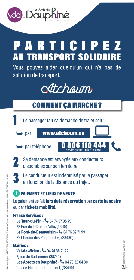 Les administrés des communes du territoire des Vals du Dauphiné souhaitant enregistrer une demande de trajet ou procéder à leur inscription peuvent joindre les opérateurs des VDD à ces horaires :