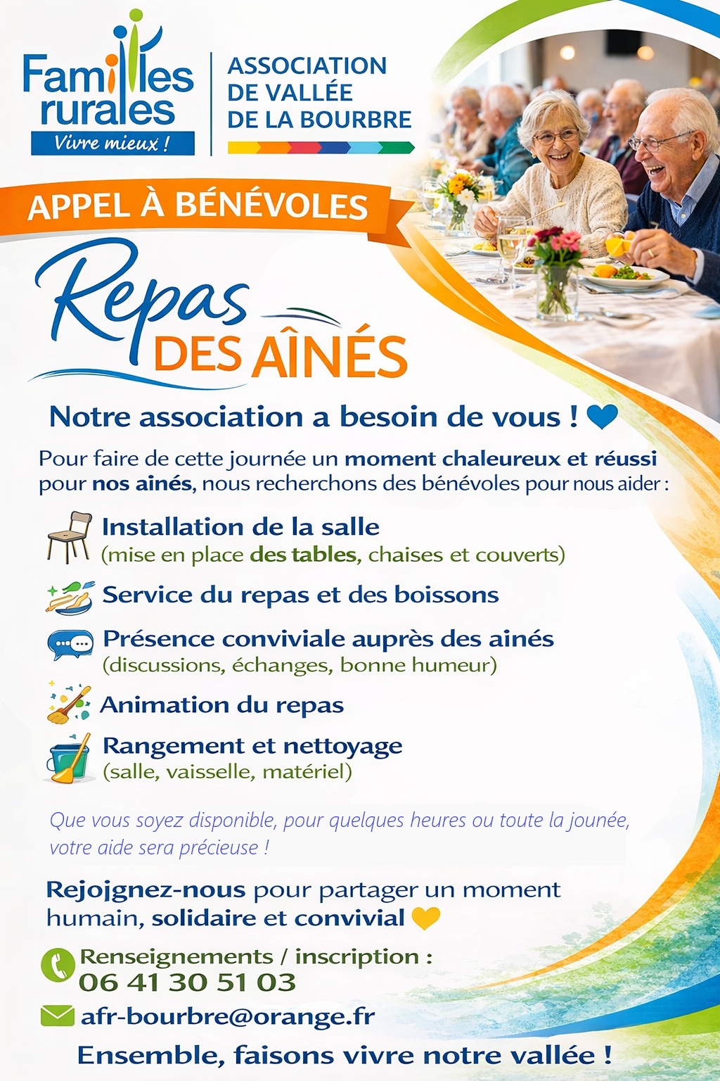FAMILLES RURALES - REPAS DES AINES - APPEL A BENEVOLES