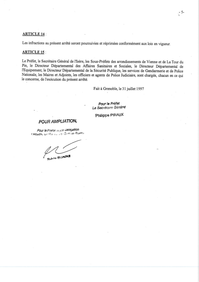 PROTOXYDE D'AZOTE - ARRETE PREFECTORAL