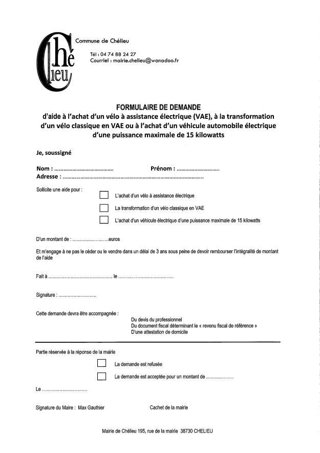 Vous trouverez ci-dessous le formulaire de demande à adresser à la mairie, avant tout achat :